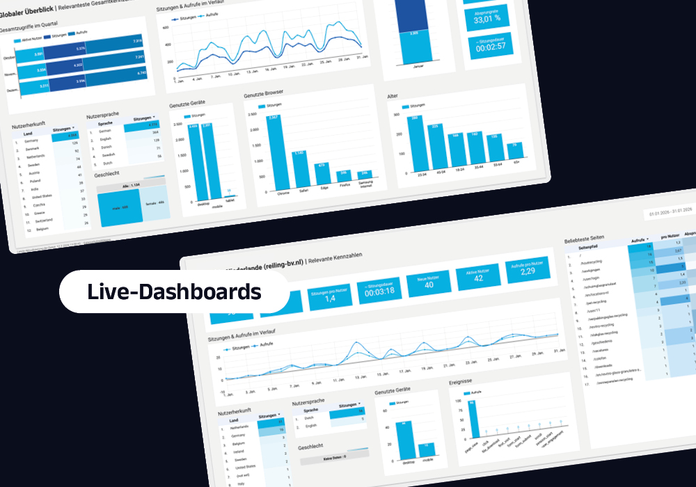 Damit Du siehst, was wirkt. Sauber aufgesetztes Tracking, sinnvolle Events und Dashboards, die man versteht.